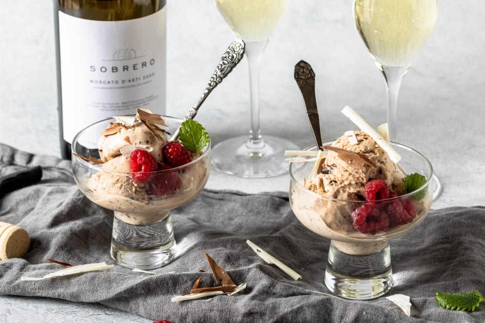 Hjemmelavet vaniljeis med store stykker lækker chokolade og rom giver en helt unik smag, der får ens gæster til at spørge efter mere.