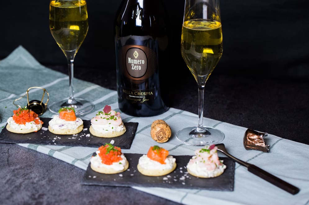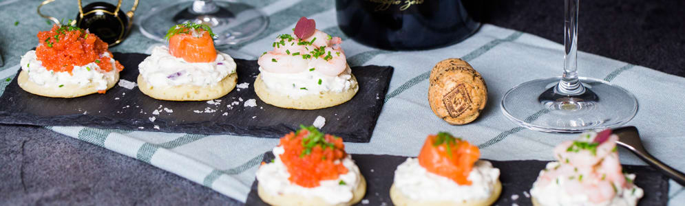 Blinis med rejer, krebsehaler og stenbiderrogn. (Se billede i bunden af artiklen)