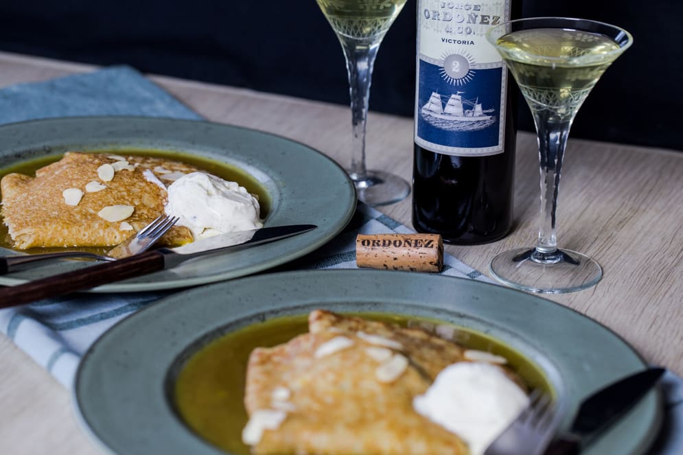 Desserten er en af Sørens signatur retter som han vandt i en konkurrence for Ost & Ko fra Dansk Mejeriforening, hvor han har lavede en ny version af den klassiske Crêpe Suzette (flamberede pandekager).