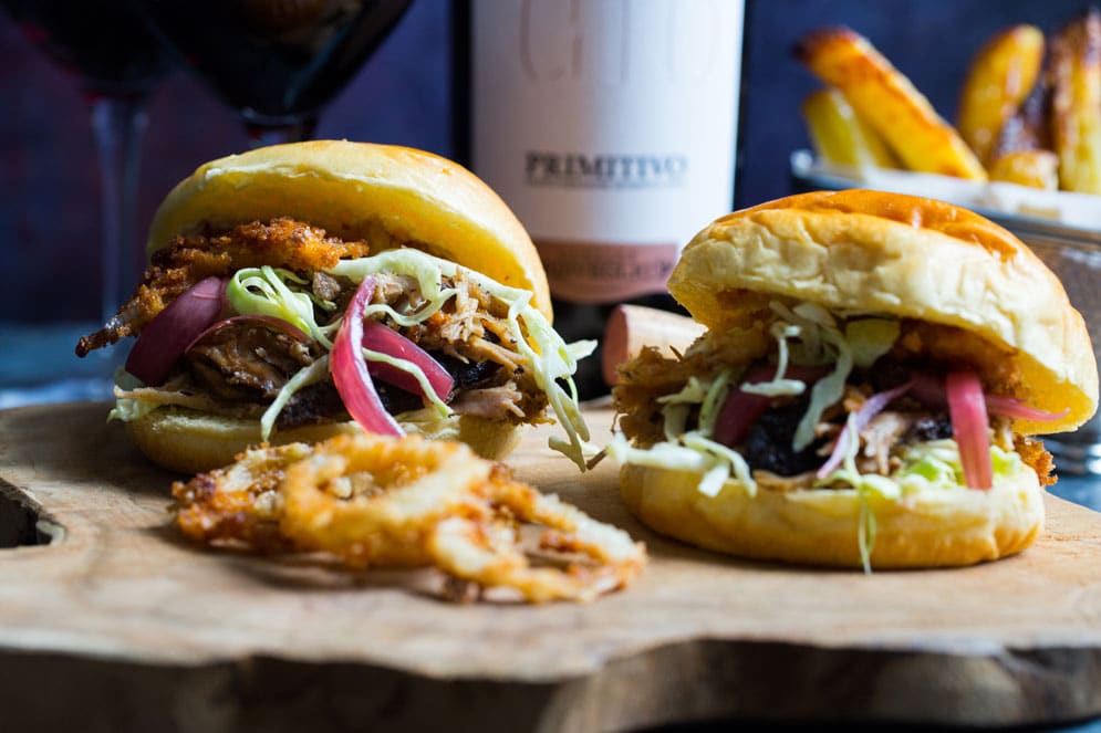 Søren fra Gastromad har haft fornøjelsen, at smage en lækker fyldig primitivo til pulled pork burgeren. Den passer rigtig godt til pulled pork pga. den både saftige, let frugtige og fyldig smag uden, at den overtager burgeren.